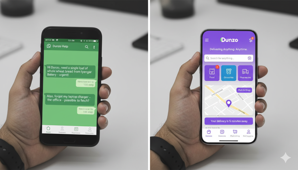 While Swiggy started with food, the Dunzo app was famous for “anything” delivery. You could send packages, get medicines, or even ask a runner to perform custom tasks.
