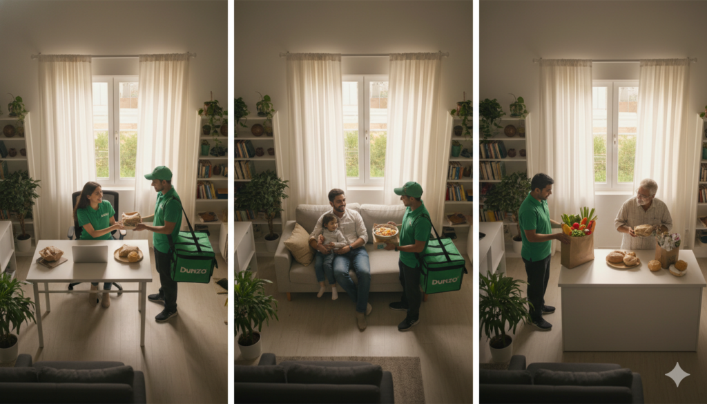 The Dunzo app didn’t just make money from delivery fees. It had a clever way of building a business. They charged a small fee to the user and took a commission from the store owners. Later, they introduced “Dunzo Daily,” which used their own mini-warehouses to make deliveries even faster and cheaper. This was their attempt to win the “Quick Commerce” war.